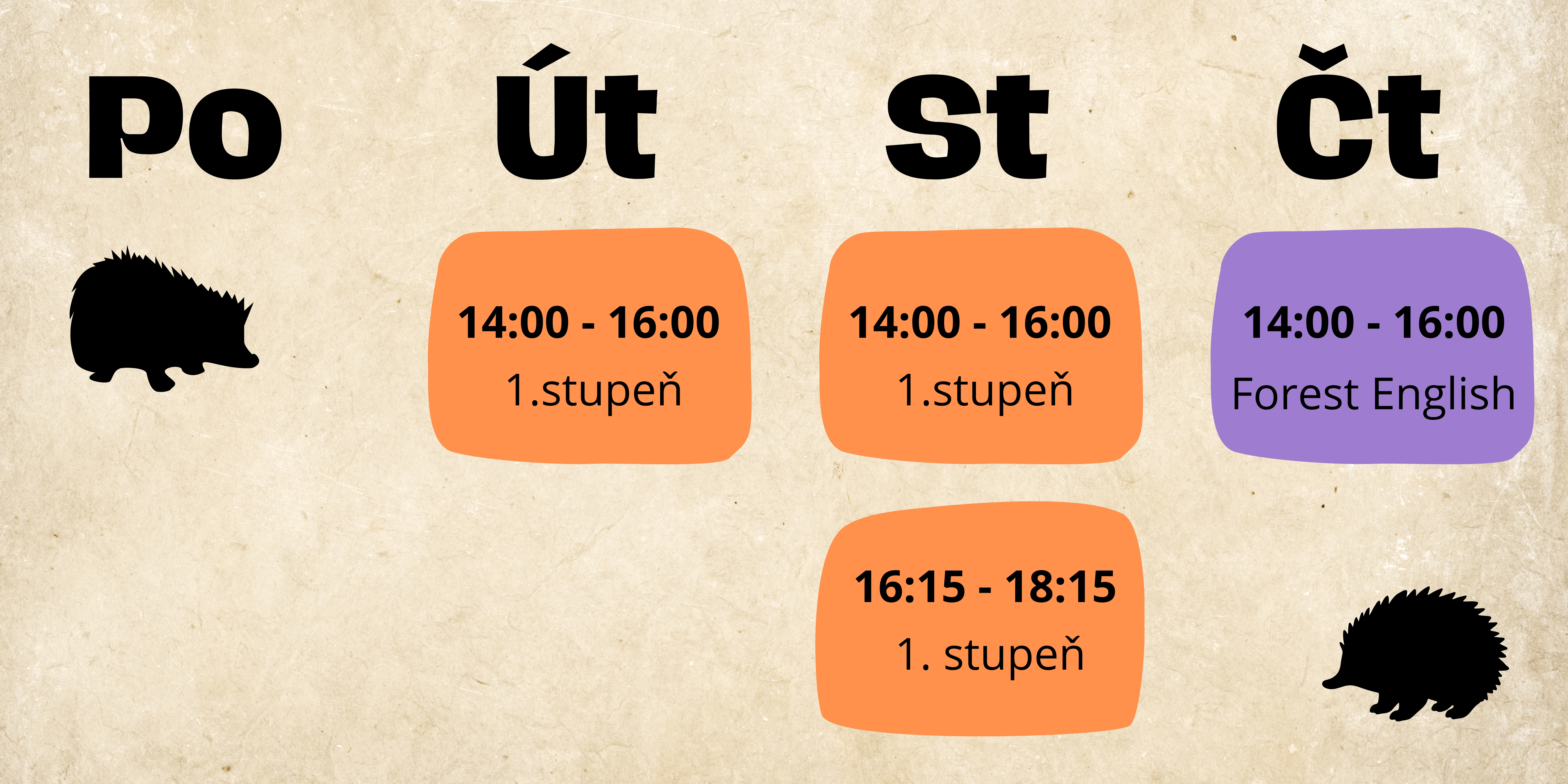 >> čtvrtek, 14:00 - 16:00 (1. stupeň ZŠ)